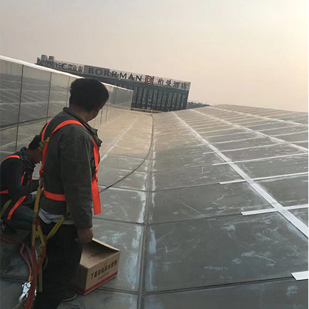 6、施工時(shí)防水涂層要手藝抹壓涂刷,涂刷均勻,保持外表平坦,施工后檢查樓頂防水施工情況,等涂層結(jié)膜硬化后方可站人。
